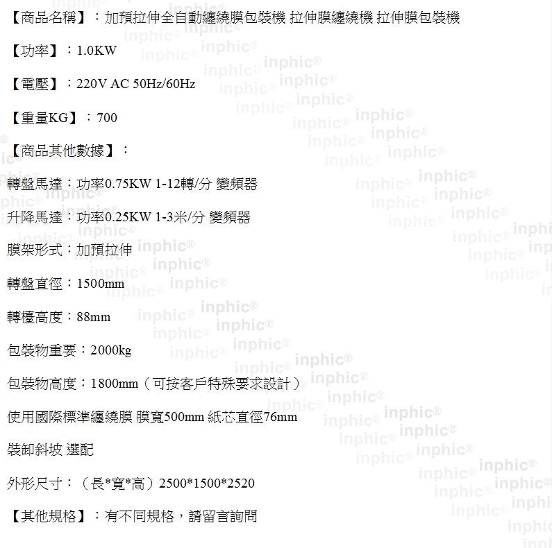 INPHIC-加預拉伸全自動纏繞膜包裝機 拉伸膜纏繞機 拉伸膜包裝機-B款_S1873C
