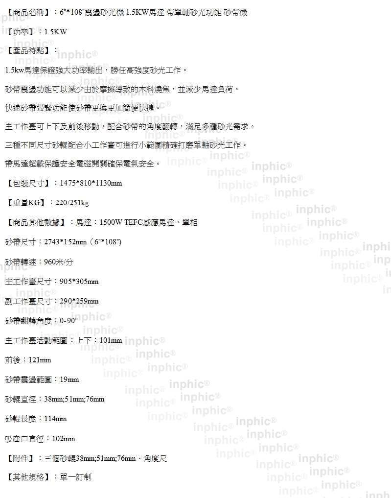 INPHIC-6"*108"震盪砂光機 1.5KW馬達 帶單軸砂光功能 砂帶機_S2672C