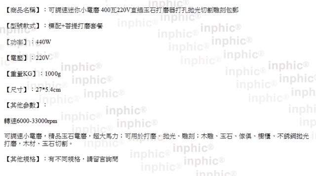 INPHIC-可調速迷你小電磨 400瓦220V直插玉石打磨器打孔拋光切割雕刻_S2577C