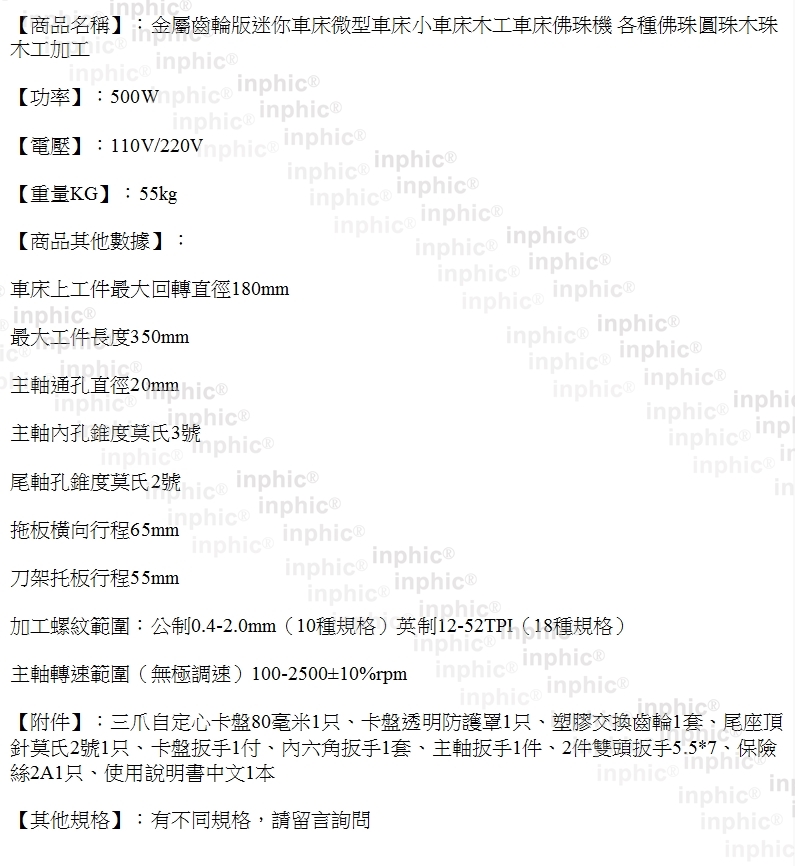 INPHIC-金屬齒輪版迷你車床微型車床小車床木工車床佛珠機 各種佛珠圓珠木珠木工加工-配置3_S2578C