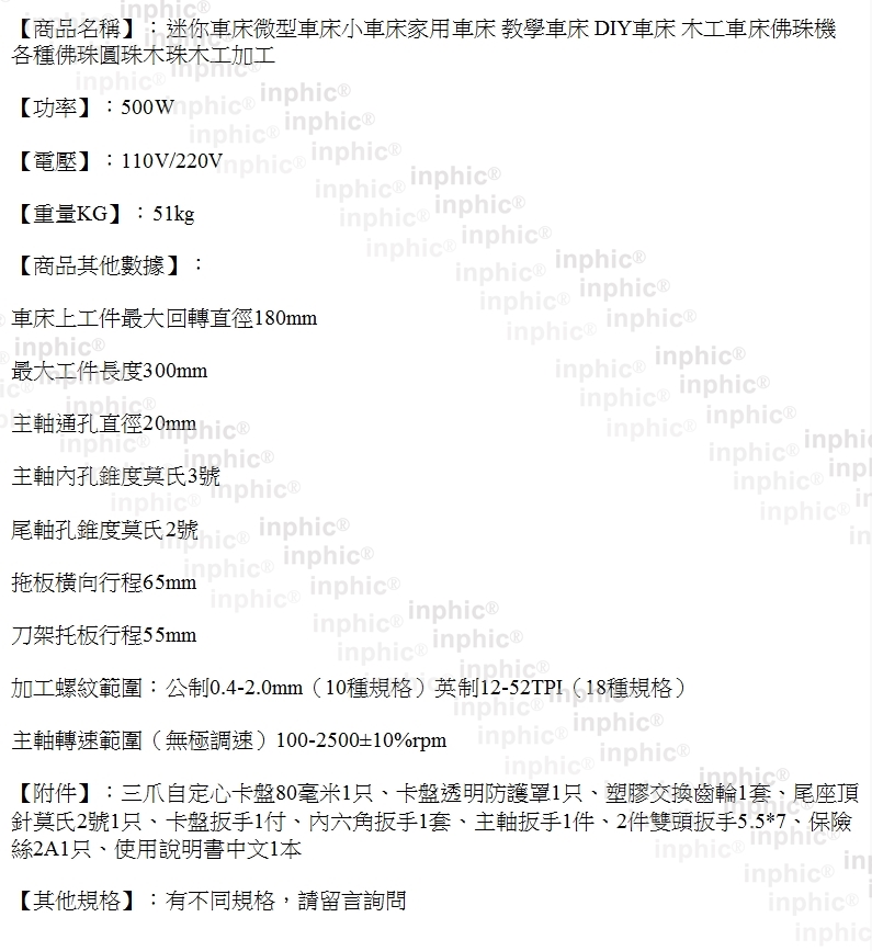 INPHIC-迷你車床微型車床小車床家用車床 教學車床 DIY車床 木工車床佛珠機 各種佛珠圓珠木珠木工加工-配置2_S2578C