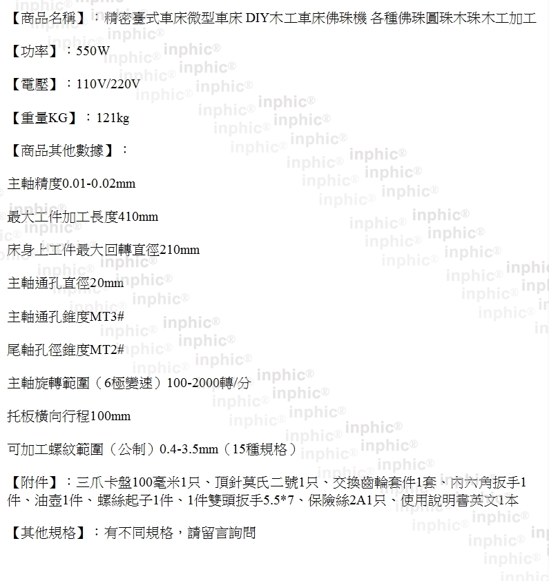 INPHIC-精密臺式車床微型車床 DIY木工車床佛珠機 各種佛珠圓珠木珠木工加工-B款_S2578C