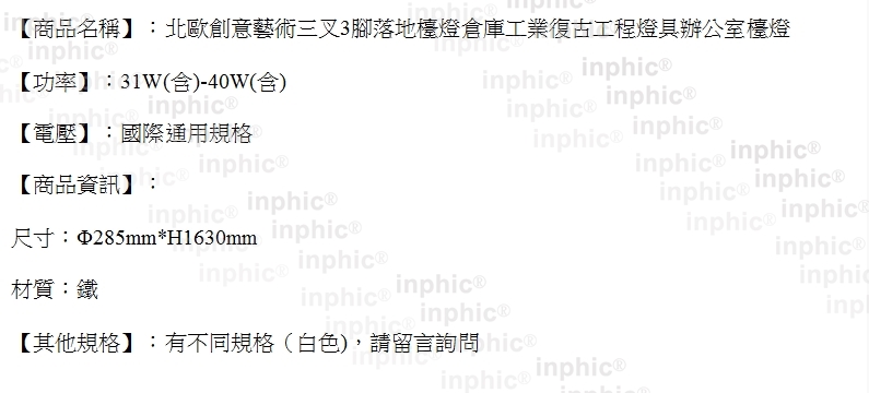 INPHIC-北歐創意藝術三叉3腳落地檯燈倉庫工業復古工程燈具辦公室檯燈-A款_S0197C