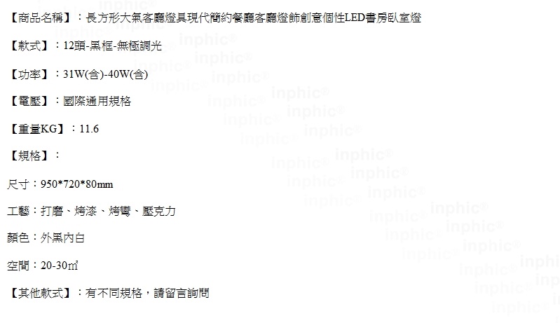 INPHIC-長方形大氣客廳燈具現代簡約餐廳客廳燈飾創意個性LED書房臥室燈-12頭-黑框_S1862C
