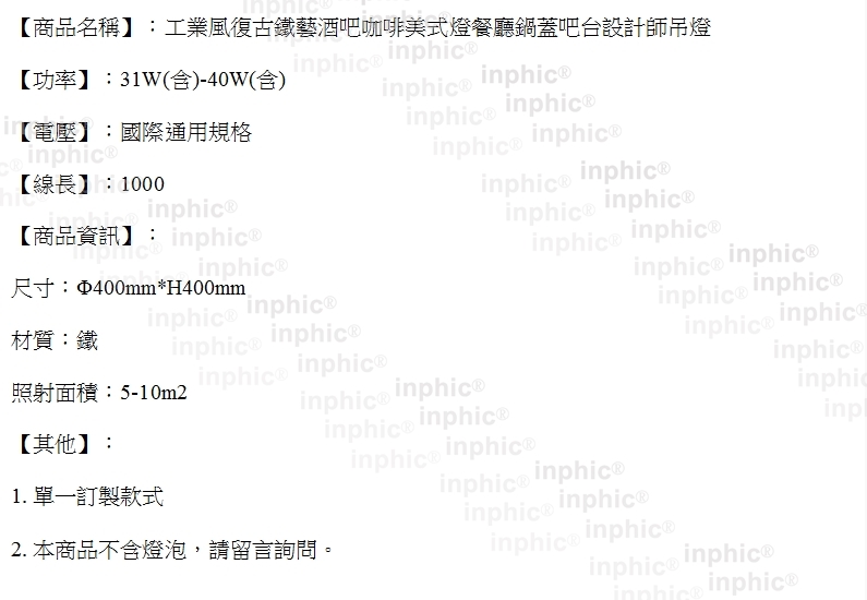 INPHIC-工業風復古鐵藝酒吧咖啡美式燈餐廳鍋蓋吧臺設計師吊燈-H款_S0197C
