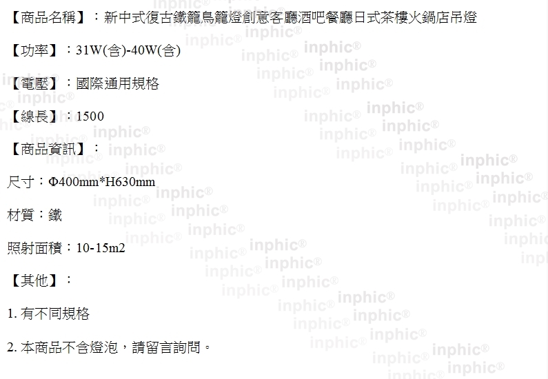 INPHIC-新中式復古鐵籠鳥籠燈創意客廳酒吧餐廳日式茶樓火鍋店吊燈-舊色中款_S0197C