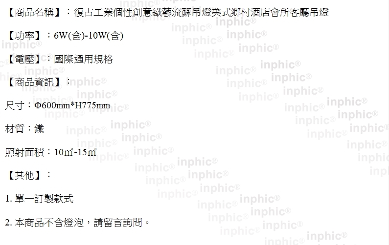 INPHIC-復古工業個性創意鐵藝流蘇吊燈美式鄉村酒店會所客廳吊燈-B款_S0197C