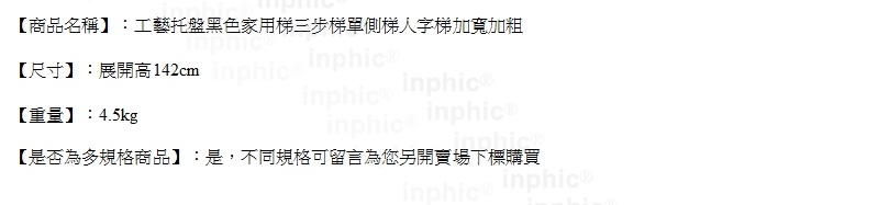 INPHIC-工藝托盤黑色家用梯三步梯單側梯人字梯加寬加粗_S00061C