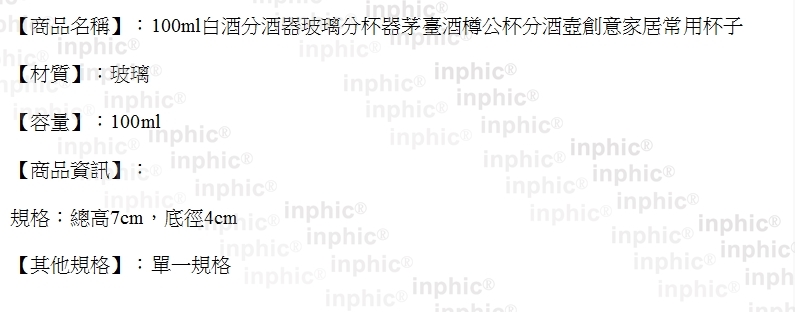 INPHIC-100ml白酒分酒器玻璃分杯器茅臺酒樽公杯分酒壺創意家居常用杯子_S150C