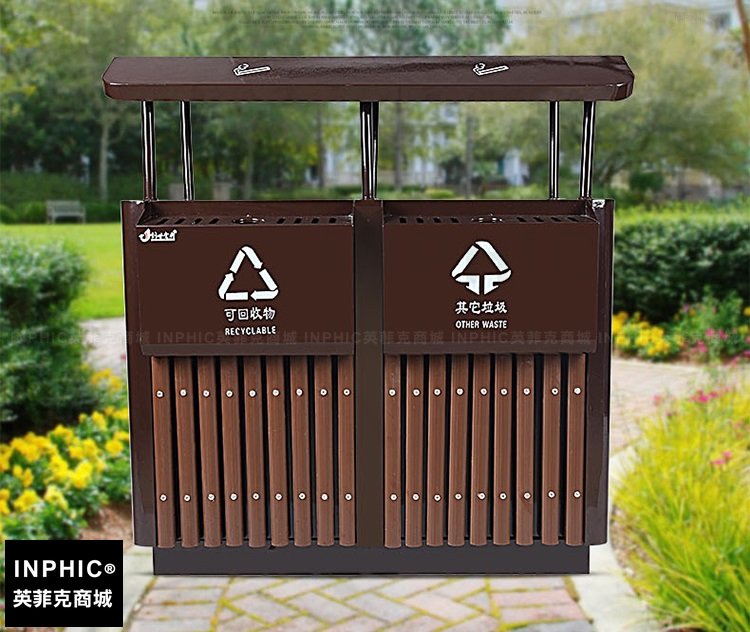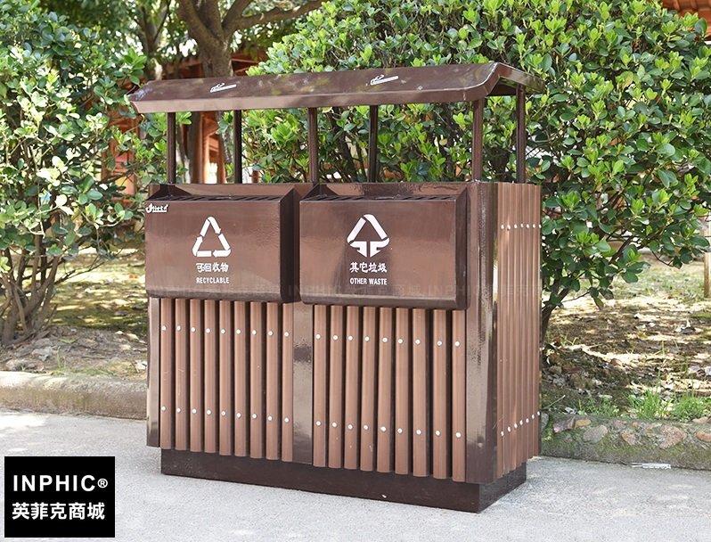 INPHIC-臺灣訂製垃圾桶廠商 鍍鋅鋼塑木公園垃圾桶大款戶外分類垃圾桶回收箱資源回收桶-雙桶_HYsi